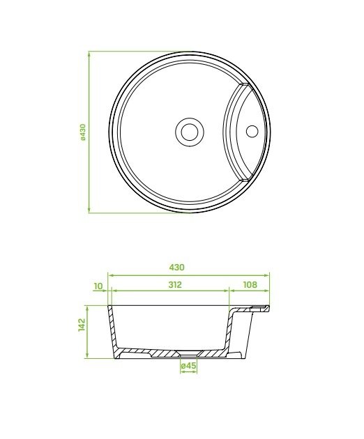 Rozmery: šírka 430 mm, dĺžka (hĺbka) 430 mm, výška (výška misy) 142 mm
