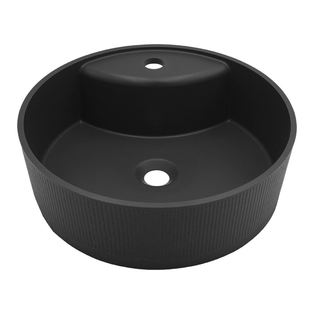 Granitová umývadlová misa CLIFF v elegantnom čiernom prevedení kombinuje moderný dizajn s vysokou odolnosťou – ideálna volba pre náročné kúpeľne s montážou na dosku.