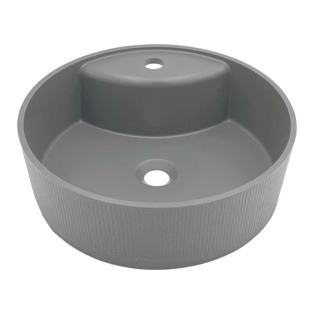 Montáž typu na dosku znamená, že umývadlo sa umiestňuje priamo na dosku, čím sa stáva dominantou kúpeľňového nábytku a zároveň umožňuje zvýrazniť materiál a tvar. Farba v neutrálnom odtieni šedej je veľmi univerzálna – dobre zapadne do moderných, minimalistických, priemyselných alebo prírodných štýlov interiéru.