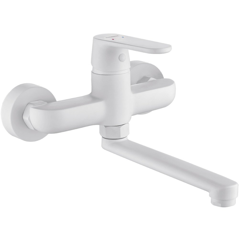 Nástenná batéria Dima v elegantnom bielom matnom vyhotovení s pohyblivou výpustou. Jednopáková batéria s keramickou hlavicou Ø 35 mm, dosah výpustu 234 mm, výška celého telesa len 120 mm. Ideálne riešenie pre kúpeľne, kde potrebujete efektívne a estetické napojenie na stenu.