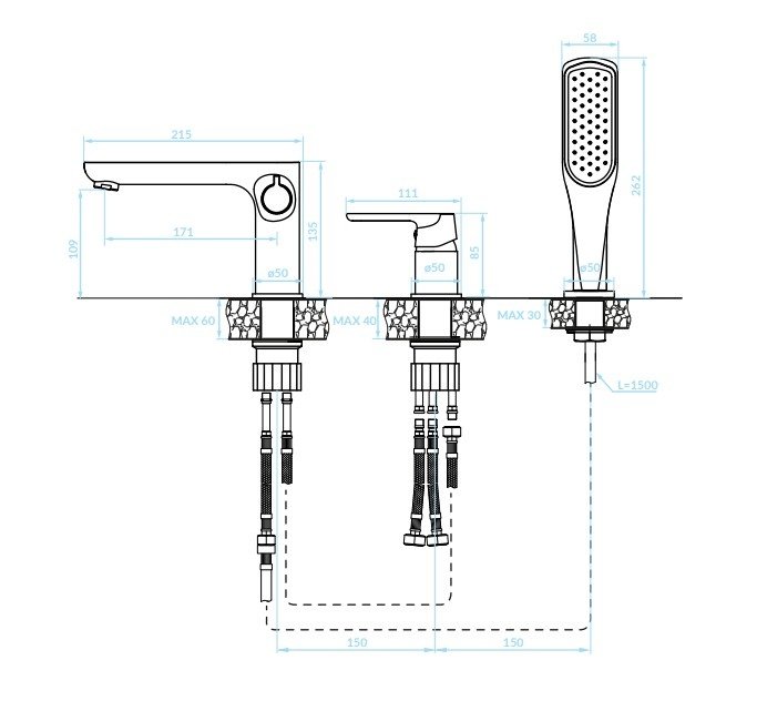 Montáž | Stojaca (na vaňu alebo na podstavec) – trojotvorová inštalácia |