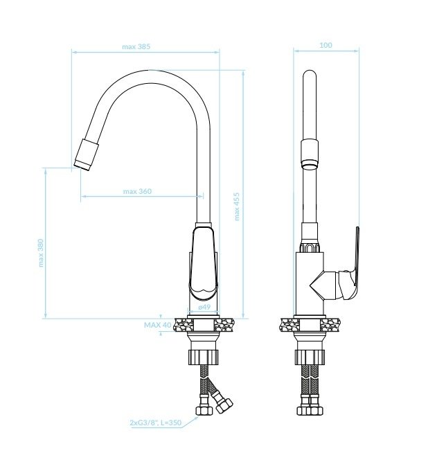 Najväčšou prednosťou tohto modelu je elastická výtoková hadica, ktorá umožňuje jednoduché manévrovanie vodného prúdu. Nezáleží či ide o oplachovanie väčších hrncov, plnenie vysokých nádob či presné nastavenie prúdu – flexibilita výtokovej hadice prináša vysoký komfort a optimalizuje pracovnú zónu.