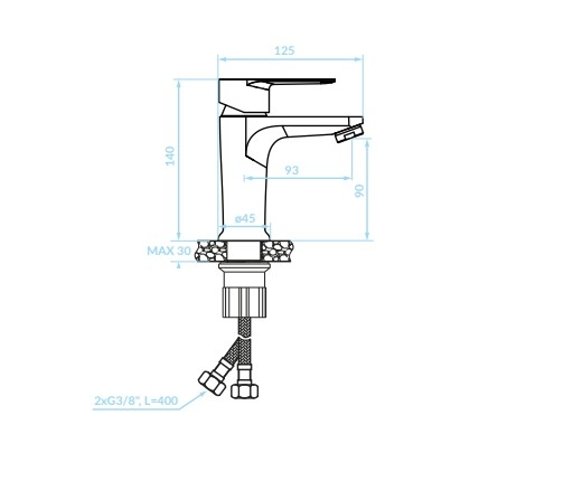 Batéria Fresno od Kuchinox je navrhnutá pre klasickú montáž na umývadlo (stojace prevedenie). Vyznačuje sa minimalistickým dizajnom, skosenou páčkou a lesklým chrómovým povrchom, ktorý sa ľahko udržiava.
