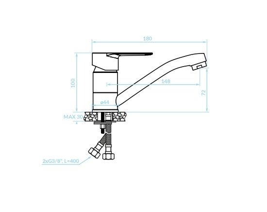 Batéria má minimalistický design, hladké línie a lesklý povrch, ktorý sa jednoducho čistí. Ovládanie je pomocou páky, ktorá umožňuje plynulé nastavenie teploty a intenzity vody. Výrobca použil keramickú kartušu Ø 35 mm s európskou kvalitou, ktorá zabezpečuje dlhú životnosť a spoľahlivosť.