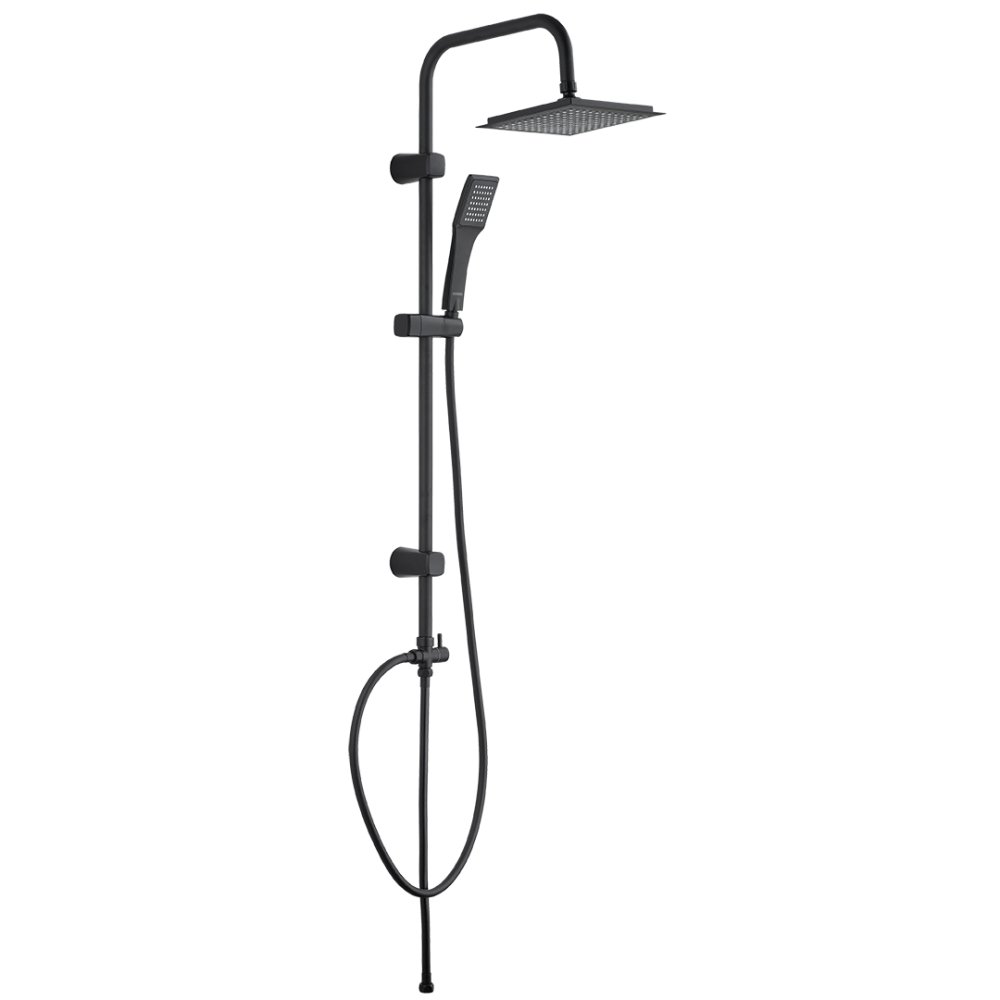 Konštrukcia zahŕňa hornú „dážďovú” sprchu o rozmere približne 200 × 200 mm, ručnú sprchovú hlavicu s rozmermi 230 × 69 mm, hadicu dĺžky približne 1500 mm, a sprchovú tyč dĺžky okolo 950 mm. Montáž je nástenná s možnosťou nastaviteľnej rozteče uchytenia, čo uľahčuje prispôsobenie v už existujúcom prostredí.