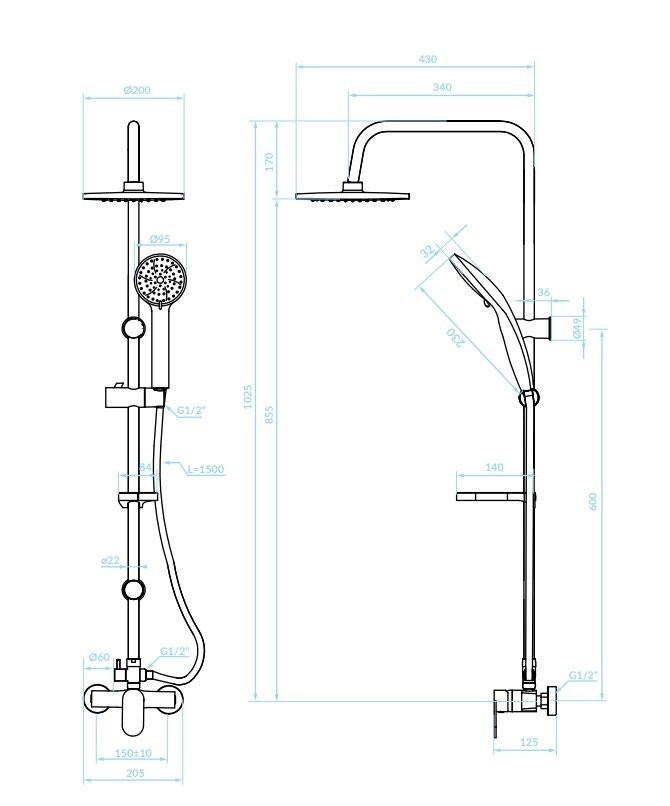Konštrukcia je stenná, výška 1025 mm, šírka 205 mm a hĺbka 430 mm. Čierna povrchová úprava elegantná, dobre ladí s modernými kúpeľňami. Súčasťou je systém proti vodnému kameňu (Anti-calc), ktorý uľahčuje údržbu a predlžuje životnosť.