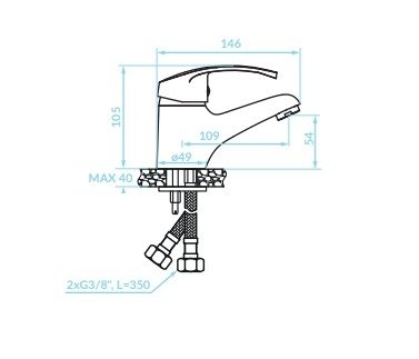 Kartuša má priemer Ø 40 mm a je keramická, čím zaručuje plynulé a presné ovládanie prúdu vody a teploty. Dosah výtokovej hubice 109 mm je vhodný pre väčšinu štandardných umývadiel, zatiaľ čo výška batérie 105 mm zabezpečuje kompaktné riešenie.