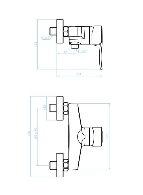 S hĺbkou 121 mm od steny a výškou 132 mm pôsobí batéria kompaktným dojmom, no poskytuje dostatočný výtok aj pohodlie pre sprchovanie. Trieda prietoku S ≤ 19,8 l/min ukazuje, že batéria dokáže poskytnúť silný prúd vody pri zachovaní efektívnosti. Akustická trieda I (≤ 20 dB) znamená, že prevádzka zostáva tichá, čo je výhodou najmä v domácnostiach, kde nechceme, aby sprchovanie rušilo pokoj v byte.