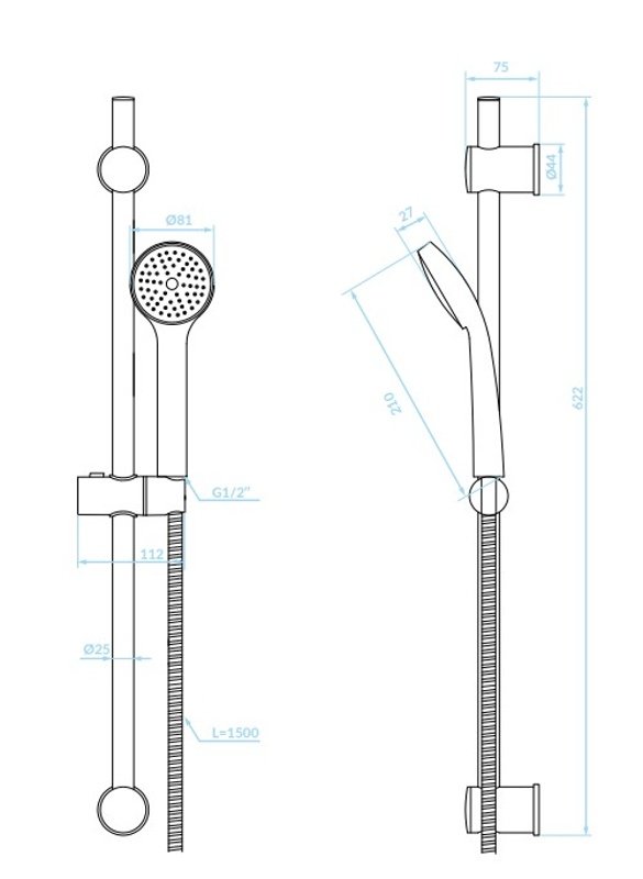Dĺžka sprchovej tyče (výška): ≈ 622 mm
