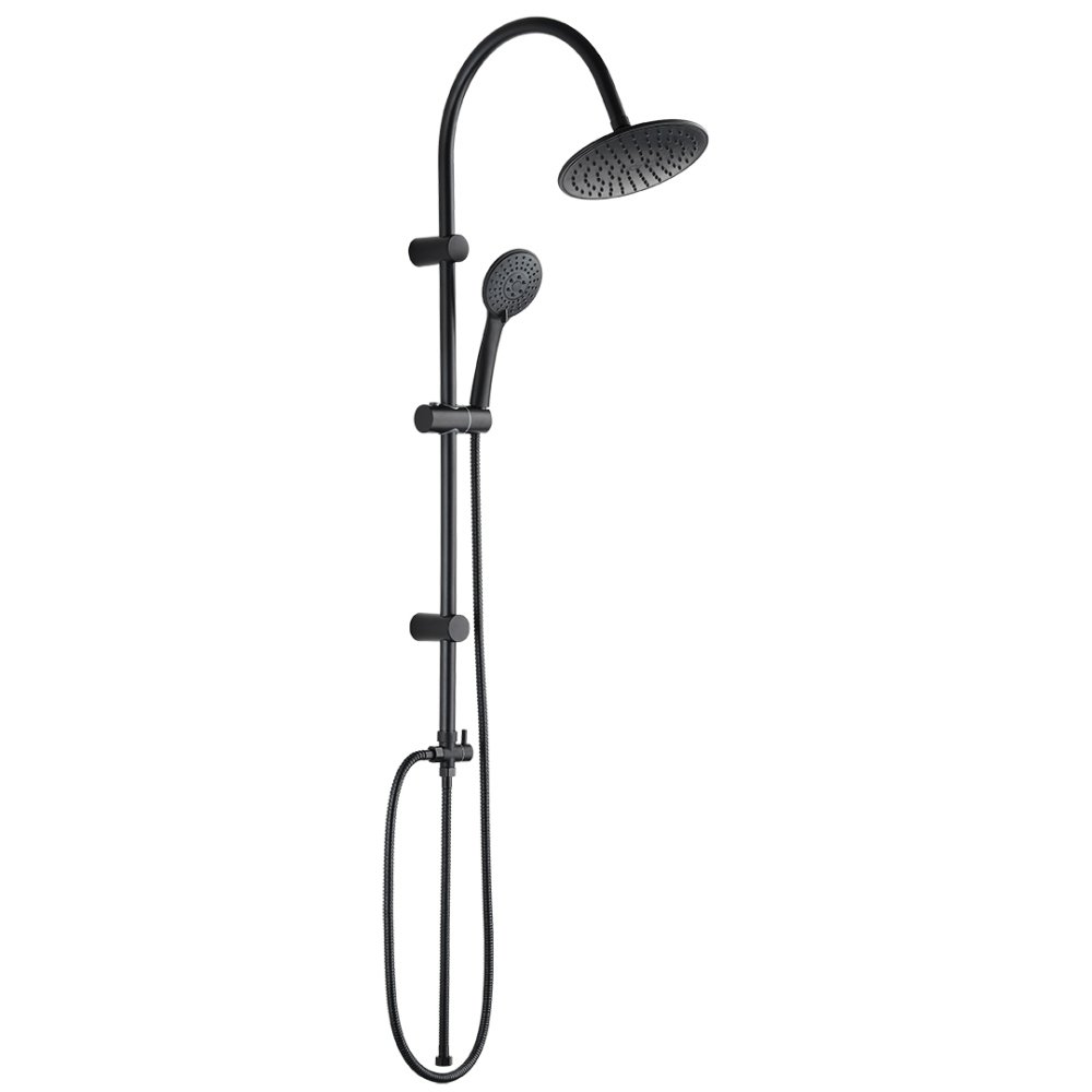Moderný sprchový set značky Kuchinox z kolekcie ONDO v elegantnej čiernej úprave prináša hornú „dážďovú“ sprchu Ø 200 mm, ručnú sprchu s tromi režimami (dážď – masáž – zmiešaný) a komfortnú dĺžku tyče 950 mm a hadice 1500 mm. Ideálne riešenie pre každú kúpeľňu, kde chcete spojenie štýlu a funkčnosti.