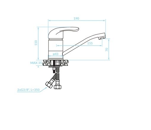Keramická hlavica Ø 35 mm zabezpečuje plynulý chod a minimalizuje opotrebenie mechanizmu v priebehu času. Výška 110 mm v kombinácii s dosahom výtoku 155 mm poskytuje dostatočný priestor nad umývadlom bez toho, aby batéria pôsobila príliš agresívne či masívne. Trieda prietoku A (≤ 15 l/min) naznačuje vyvážený pomer medzi komfortom prúdu a šetrením vody. Batéria tiež spĺňa akustickú triedu I (≤ 20 dB), čo zabezpečuje tichý chod – veľmi dôležité pri použití v domácnostiach.