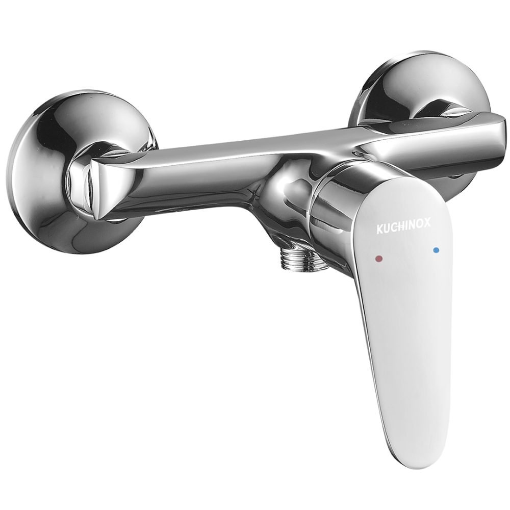 Elegantná nástenná sprchová batéria Sagra od Kuchinoxu (kód BQR 040D) v modernom chrómovom prevedení, bez sprchového setu — ideálne riešenie pre minimalistické kúpeľne. Jednouchyťová regulácia, keramická kartuša Ø 35 mm, akustická trieda I (≤ 20 dB), trieda prietoku B (≤ 25,2 l/min) a montáž na stenu prinášajú spoľahlivosť aj štýl.