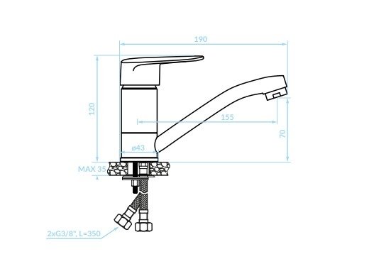 Vďaka otočnej výtokovej trubici s dosahom približne 155 mm získate vyššiu flexibilitu pri každodennom používaní — či už umývate ruky, napeňujete tvár alebo napĺňate nádobu. Otočný výtok umožňuje prúd vody presmerovať podľa potreby, čo zvyšuje komfort a minimalizuje striekajúcu vodu.