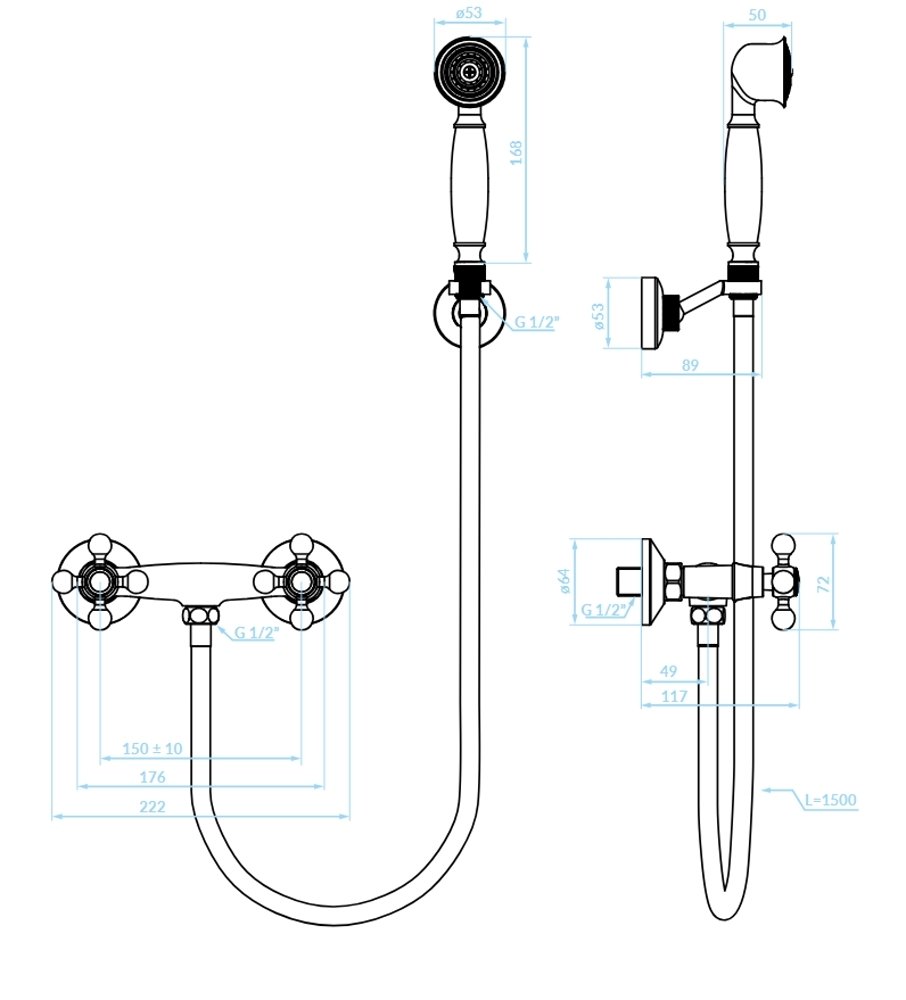 STILO nástenná sprchová batéria so sprchovým setom – mosadz prevedenie v retro štýle prináša kúpeľni elegantnú kombináciu klasiky a spoľahlivej funkčnosti.
