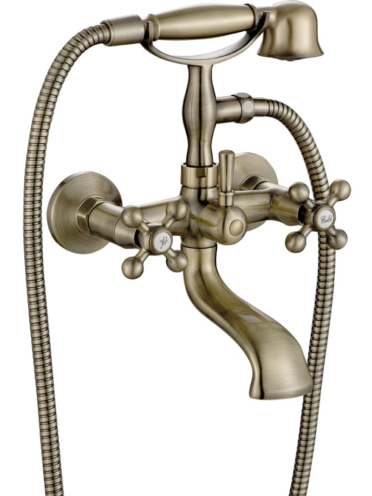Kuchninox STILO nástenná vaňová vodovodná batéria so sprchovým setom BKI_511D - antická mosadz