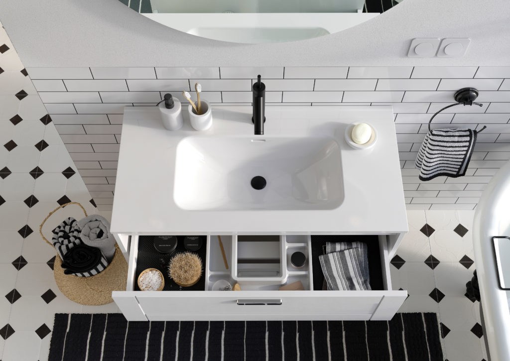 ✔ Praktické riešenia úložného priestoru – dostatok miesta na všetky kúpeľňové potreby