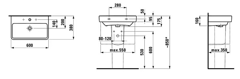 LAUFEN PRO S keramické umývadlo, s 1 otvorom 60 x 38 cm biele LCC H8189594001041
