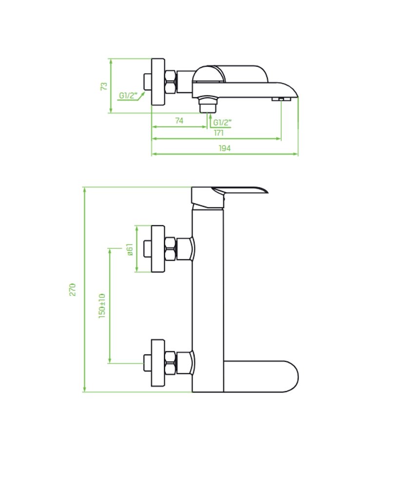 Laveo ALEA nástenná vaňová batéria bez sprchovej súpravy