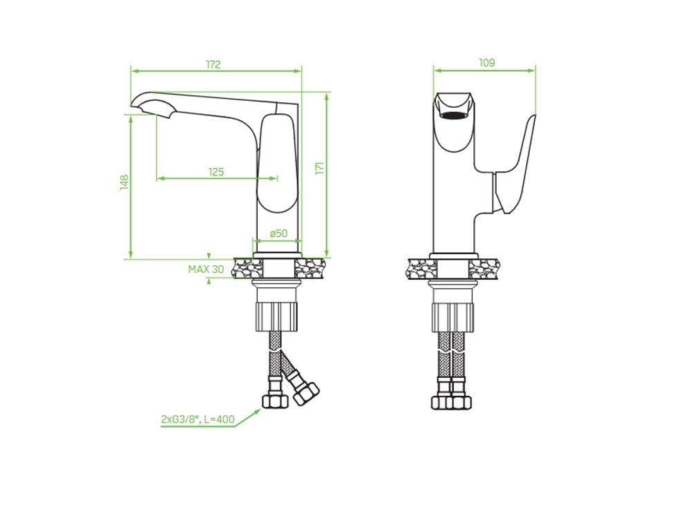 Výška batérie: 171 mm – vyššie osadenie, ktoré pôsobí elegantne a zjednodušuje manipuláciu pri umývaní rúk