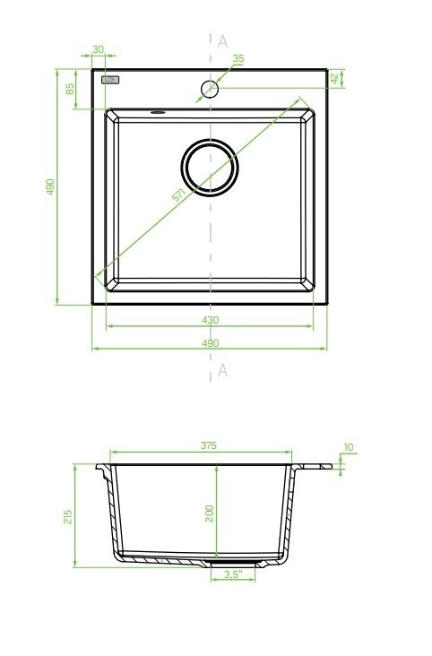 Jednokomorový granitový drez Laveo Alena s rozmermi 490 × 490 mm a hĺbkou komory 200 mm prináša praktické riešenie pre menšie kuchyne. Inovatívny syfón typu Space Saving šetrí priestor pod drezom, materiál zabezpečuje vysokú odolnosť voči teplotám až do 250 °C, nárazom, zafarbeniu a poškriabaniu. Určený pre spodnú skriňu s minimálnou šírkou 50 cm.