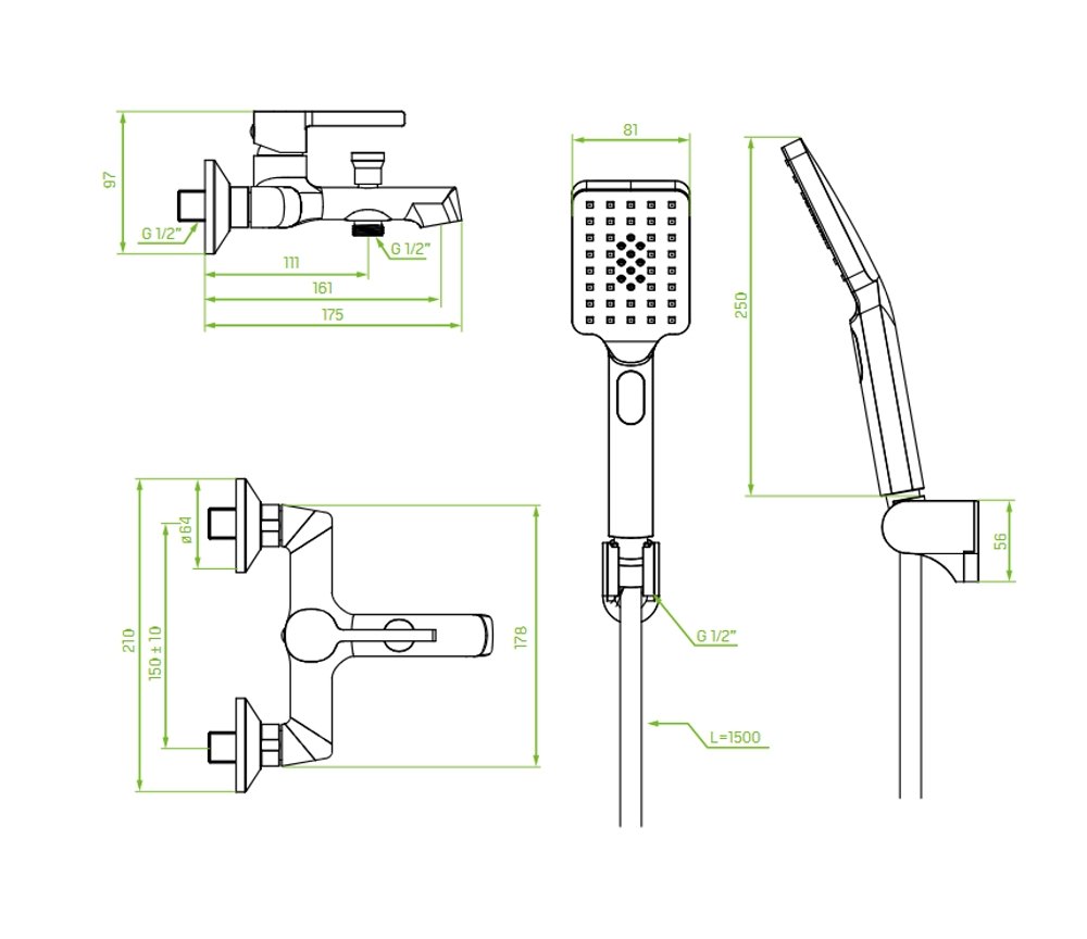 Laveo ALITA nástenná vaňová batéria + sprchová súprava