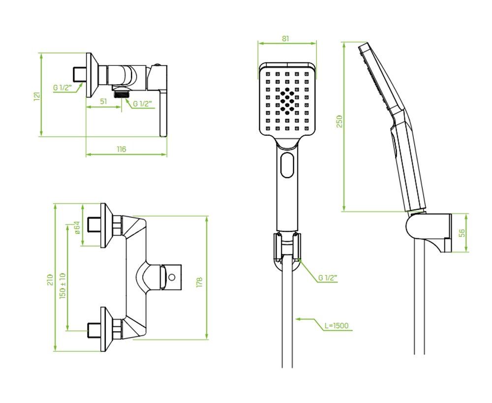 Sprchová nástenná batéria Alita so sprchovým setom je elegantné a funkčné riešenie pre modernú kúpeľňu. Má jednoručný ovládač, keramickú kartušu s priemerom 25 mm a možnosť prepínania medzi dvomi režimami prúdu — dažďový a hydromasážny. Montuje sa na stenu a je dostupná v chrómovom prevedení.