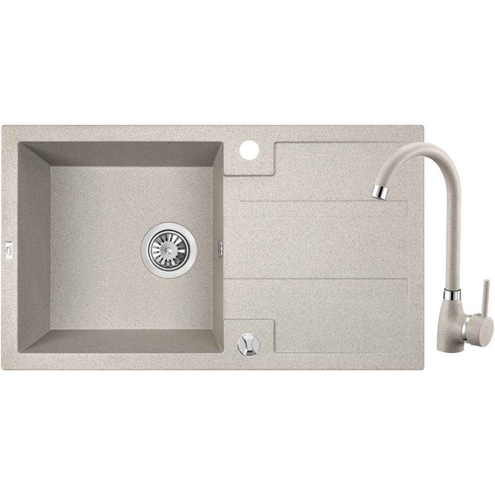 Elegantný granitový set Laveo Barbados SBBA411T – 1-komorový drez s odkvapkávacou plochou v modernej béžovej farbe, s batériou v sade. Spoľahlivý výber pre kuchyne, ktoré vyžadujú kvalitu, funkčnosť a štýl.
