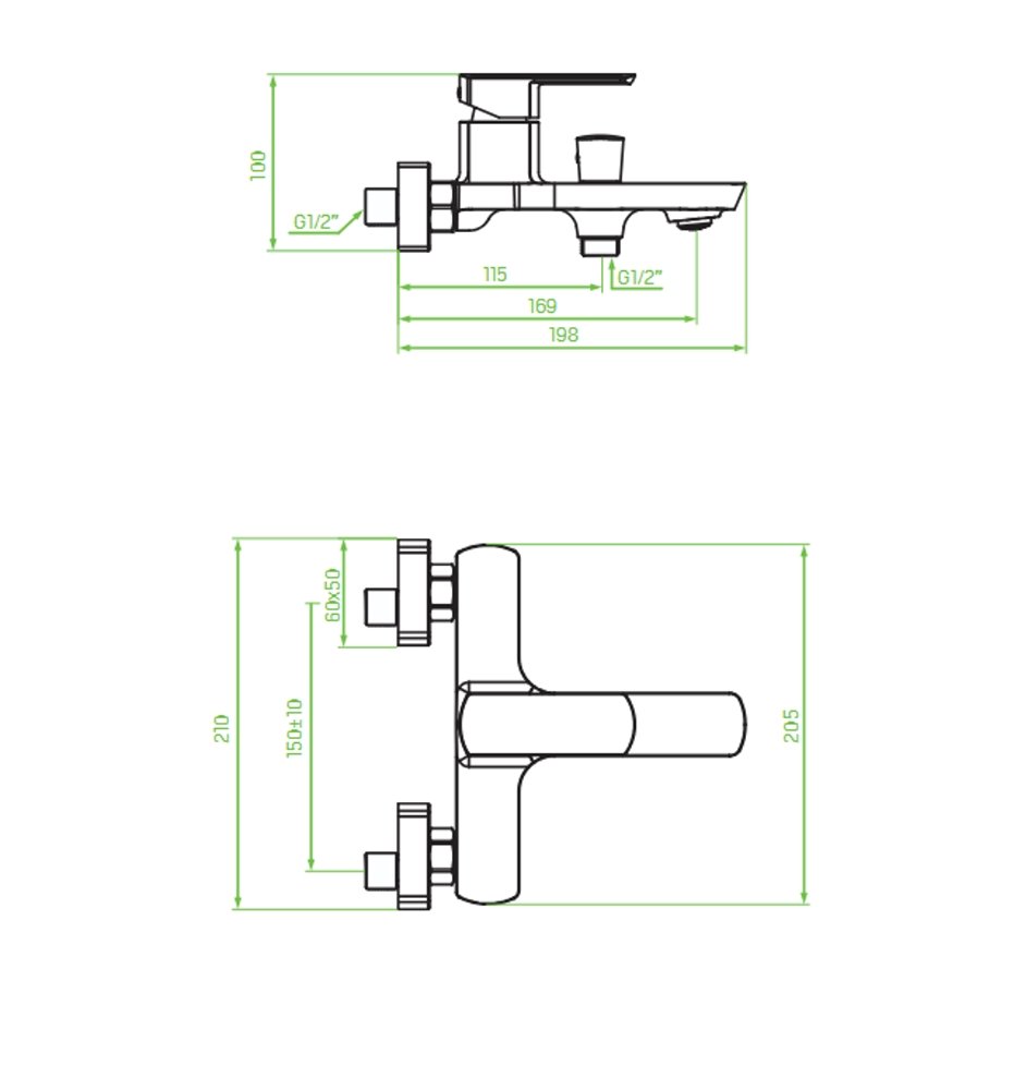 Laveo CALLA nástenná vaňová batéria bez sprchovej súpravy
