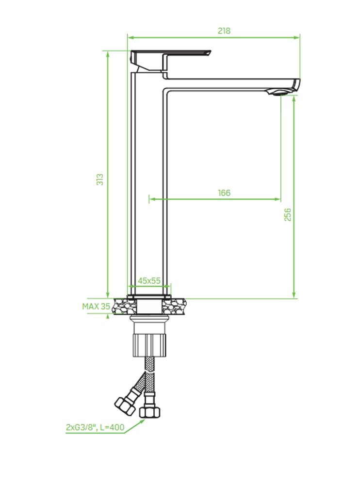 Dosah výpustu: 166 mm