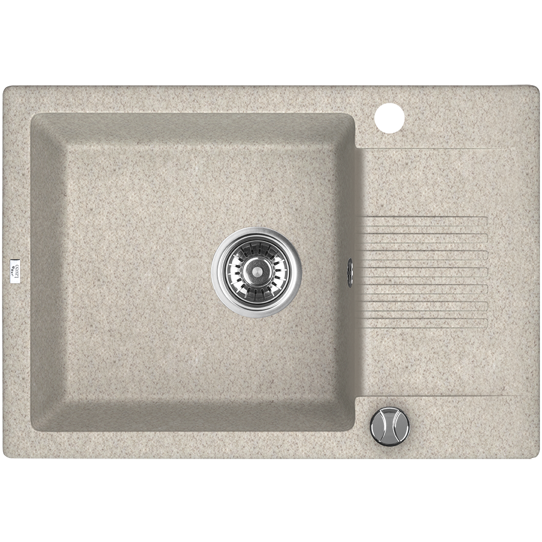 Moderný granitový drez Laveo Celia SBC_413T v béžovej farbe, s jednou komorou a krátkym odkvapkávačom, vhodný pre spodnú skrinku od 50 cm. Odolný materiál, predvŕtané otvory, priemer odtoku 3,5″ a balenie obsahuje automatickú zátku a priestorovo úsporný sifón.