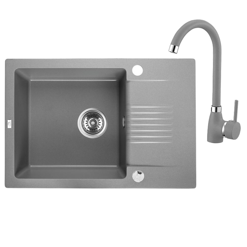 Set Laveo Celia SJCG513T je prvotriedny granitový drez s jednou komorou a polovičným odkvapkávacou plochou, v elegantnej sivografitovej farbe, doplnený kvalitnou batériou. Ideálny produkt pre moderné kuchyne, ktoré chcú spojiť štýl, funkciu a odolnosť.
