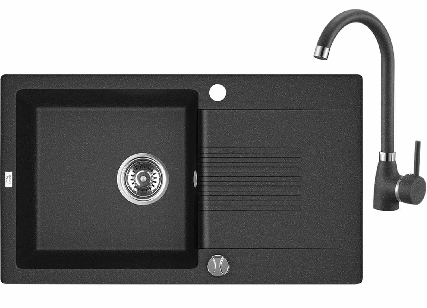 Laveo CELIA granitový drez 76 x 44 cm s batériou, čierny SJCG711T - Čierny