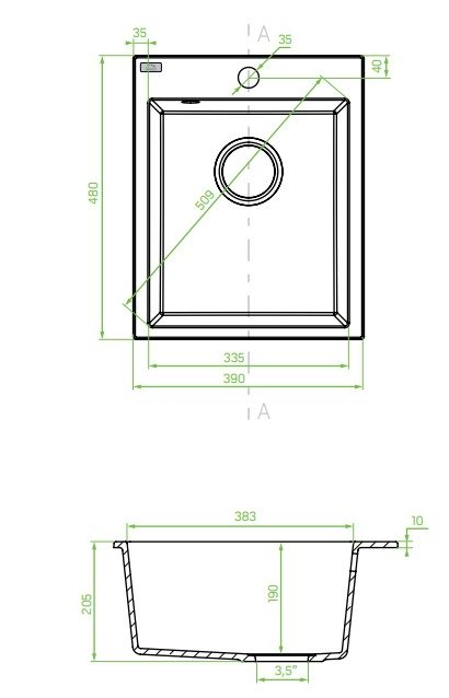 Je určený pre zapustenú (hornú) montáž do pracovnej dosky a umožňuje pripojenie umývačky riadu. Súčasťou balenia je priestorovo úsporný sifón typu Space Saving, ktorý uvoľňuje miesto v skrinke pod drezom – výborné riešenie pre menšie priestory.