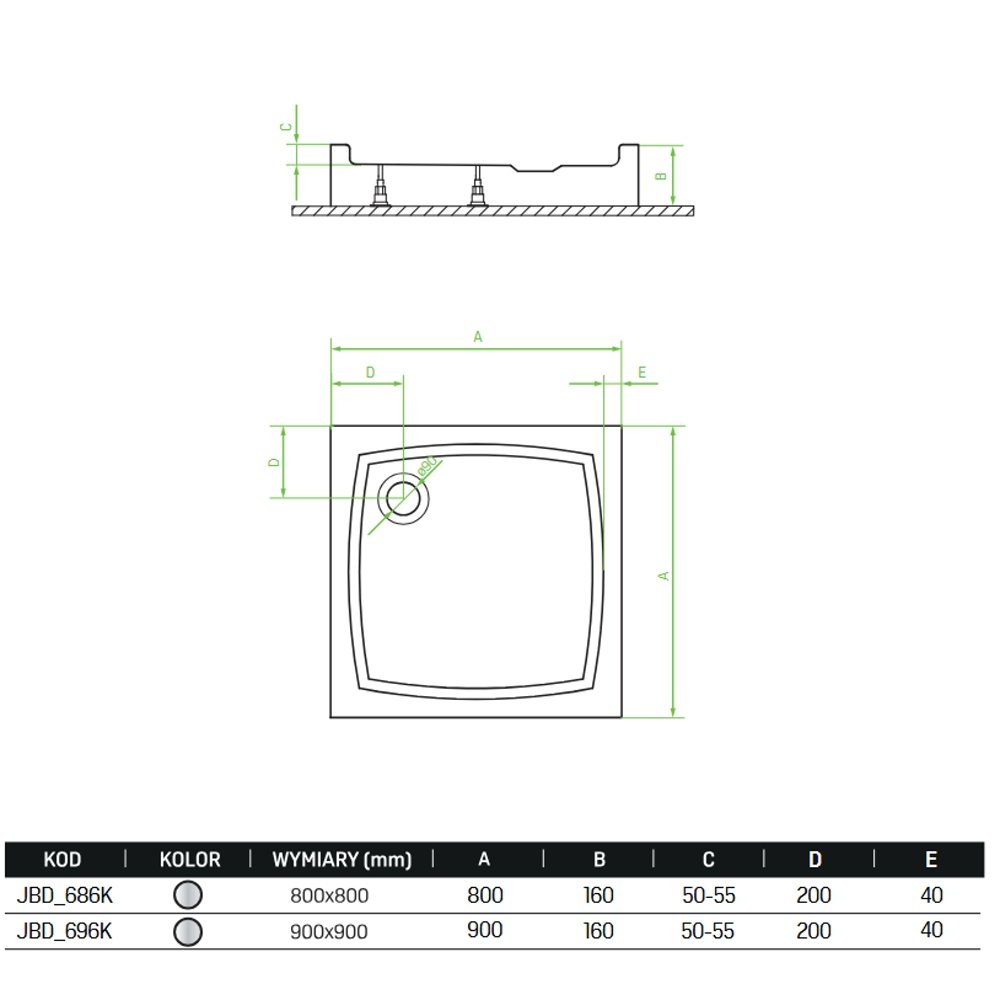 Sprchová vanička Laveo „Desna“ štvorcová 80 × 80 cm predstavuje elegantné a praktické riešenie pre kúpeľňu. Vyrobená z kvalitného akrylu s laminovanou povrchovou úpravou, s nastaviteľnými montážnymi nožičkami a výškou iba 160 mm – ideálna pre moderné sprchové priestory s dôrazom na čistý dizajn.