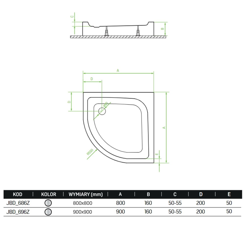 Štýlová sprchová vanička Laveo Desna v rozmere 80 × 80 cm s tvarom štvrťkruhového sprchového kúta prináša kvalitné akrylátové prevedenie s laminovanou povrchovou úpravou, výškou iba 160 mm a nastaviteľnými montážnymi nohami – ideálne riešenie pre modernú kúpeľňu s dôrazom na dizajn aj funkčnosť.