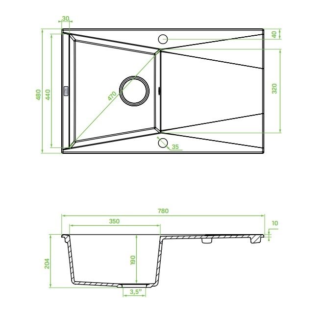 Elegantný jednokomorový granitový drez Laveo Grenada (model SBG_711T) s odkvapkávačom a moderným dizajnom v čiernej farbe. Rozmery 780 × 480 mm, hlboká komora (~190 mm), priestorovo úsporný sifón, možnosť pripojenia umývačky riadu. Vyrobený z odolnej granitovej zmesi, vhodný pre kuchyňu, kde je kladený dôraz na štýl aj kvalitu.