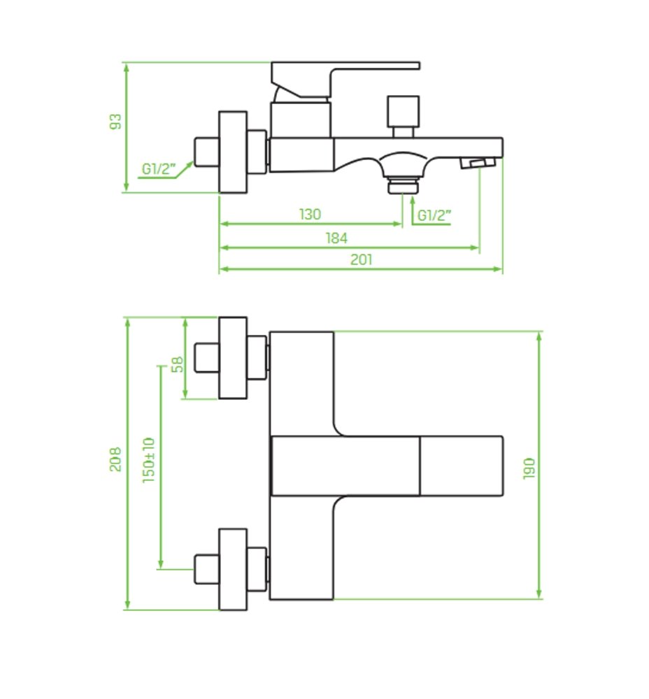 Výtok: pevná výtoková rúrka s dosahom 184 mm – dostatočný priestor nad vaňou pre komfortné využitie