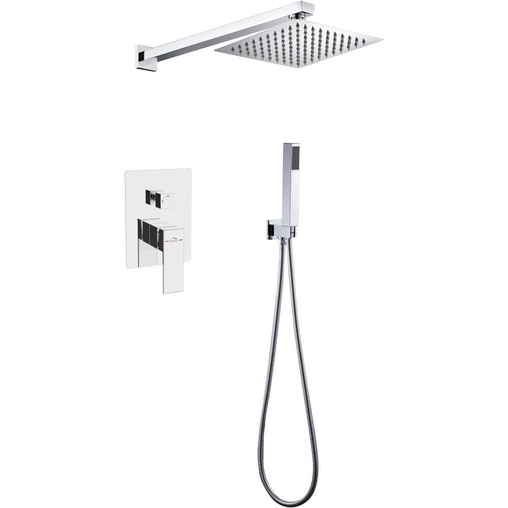 Sprchový set Kvadrato od značky Laveo vyniká moderným, kubistickým dizajnom — séria Kvadrato je charakterizovaná ostrými hranami, kockovými tvarmi a čistou líniou. Tento konkrétny model je kompletným sprchovým setom „podomietkovým“vrátane batérie, hornou sprchou, ručnou sprchou, 150 cm hadicou a montážnym boxom – všetko pripravené pre elegantné zabudovanie do steny.