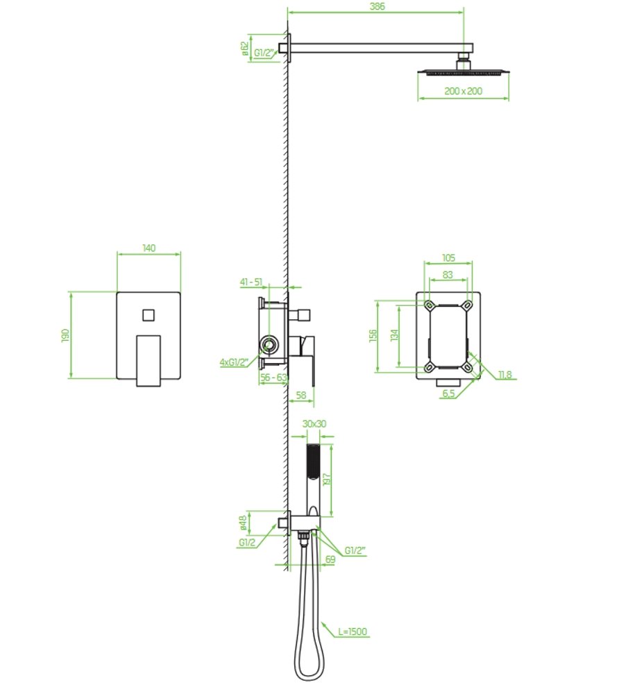 Montáž: podomietková – montáž batérie a rozvodov skrytá v stene, vidieť len ovládacie prvky a sprchovú zostavu