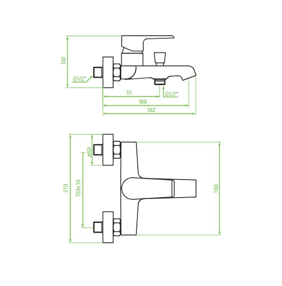 Laveo LARGO nástenná vaňová batéria bez sprchovej súpravy