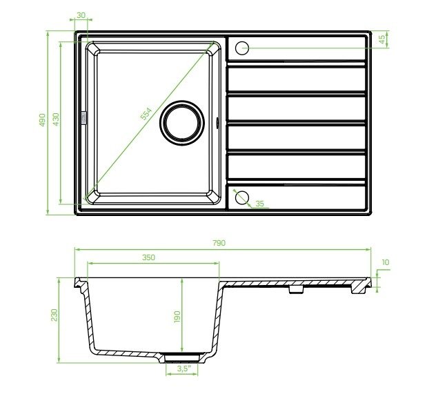 | Materiál | Granitový kompozit (granit/poligranit) |