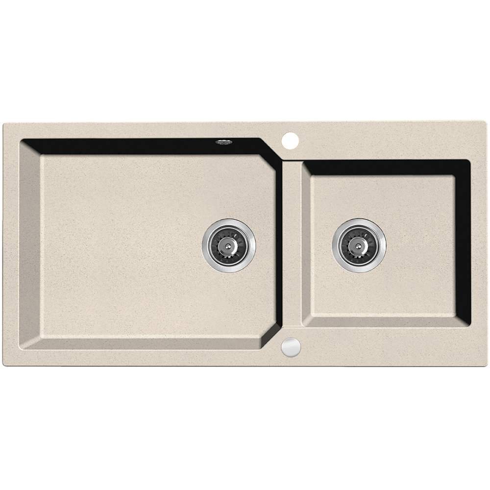 Elegantný 2-komorový granitový drez Milos SPM_4209 v bežovej farbe s rozmermi 980 × 500 mm a hĺbkou komôr ~200 mm. Vyrobený z kvalitnej granitovej zmesi s vysokou odolnosťou, s priestorovo úsporným sifónom v balení a možnosťou obojstrannej inštalácie – ideálny pre veľkorysé kuchyne, ktoré kombinujú štýl a praktickosť.