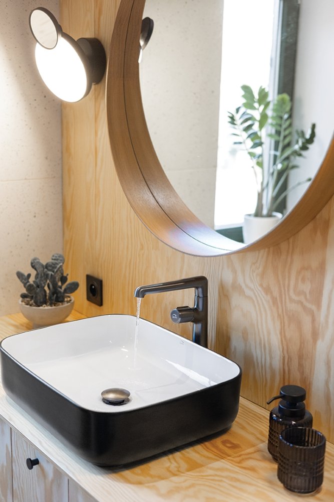 Laveo Mogami – keramické umývadlo na dosku je dokonalou voľbou pre moderné kúpeľne, ktoré spájajú eleganciu a praktickosť. Jeho minimalistický obdĺžnikový tvar s jemne zaoblenými hranami pôsobí ľahko a štýlovo. Biela keramika doplnená decentným čiernym orámovaním vytvára výrazný kontrast, ktorý dokonale ladí s čiernymi batériami a doplnkami. Umývadlo je vyrobené z kvalitnej glazovanej keramiky, odolnej voči poškodeniu, škvrnám aj vodnému kameňu. Nadčasový dizajn bez otvoru na batériu poskytuje voľnosť pri výbere vysokej alebo podomietkovej batérie.