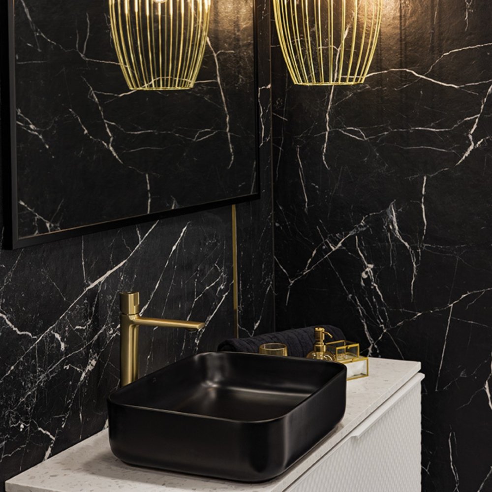 Elegantný obdĺžnikový tvar so zaoblenými rohmi pôsobí nadčasovo a hodí sa do minimalistických aj industriálnych kúpeľní. Čierný povrch vytvára pôsobivý kontrast, ktorý okamžite upúta pozornosť.