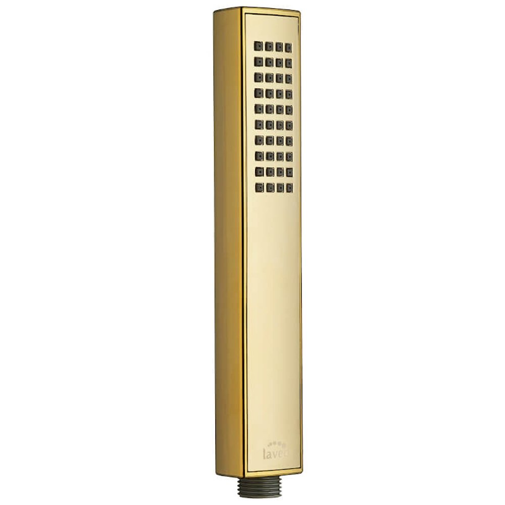 Elegantná sprchová ružica Laveo Pola v zlatom vyhotovení s jedným režimom prúdu – dážďový prúd. Rozmer: 210 × 37 mm, pripojenie ½″, s technológiou Anti-Calc na ochranu proti usádzaniu vodného kameňa. Tvar: štíhly obdĺžnik, farby varianty – chróm, čierna, zlaté odtiene. Ideálne riešenie pre moderné kúpeľne s dôrazom na minimalistický dizajn a jednoduchú údržbu.