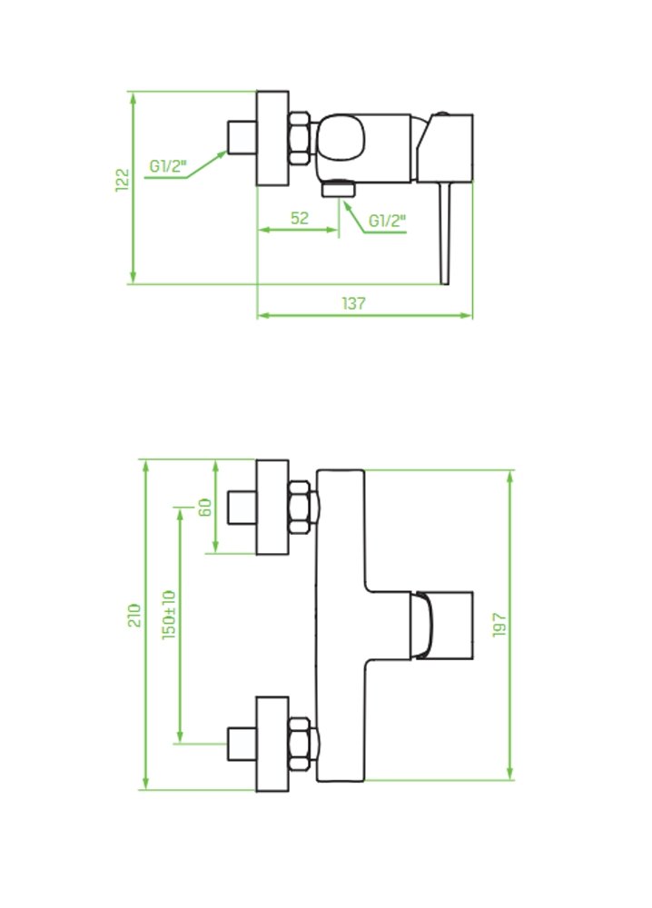 Spôsob montáže: nástenný (štandardný rozstup 150 mm)
