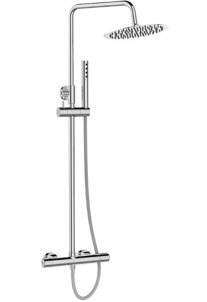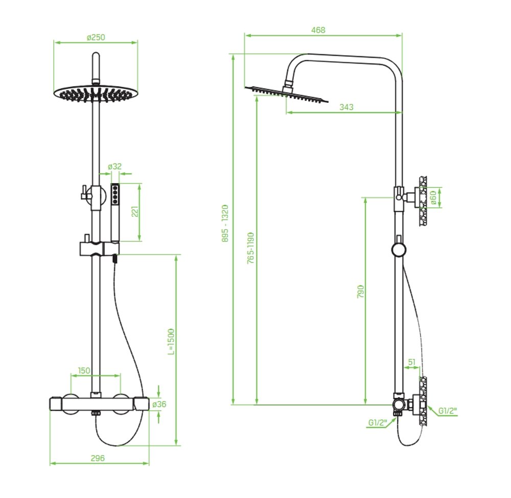 Predstavujeme moderný Laveo Pretto sprchový set s batériou, ktorý prináša štýlové riešenie pre vaše kúpeľňové interiéry. Tento komplet obsahuje nástenný sprchový stĺp s batériou v klasickom chrómovom alebo trendovom grafitovom či čiernom prevedení, s výškou nastaviteľnou v rozmedzí 895 – 1320 mm, šírkou 296 mm a hĺbkou 468 mm. Súčasťou balenia je sprchová hlavica o rozmere 221 × 32 mm, 1500 mm dlhá hadica, systém proti vodnému kameňu a otočeniu hadice, čo zaručuje vysokú praktickosť.