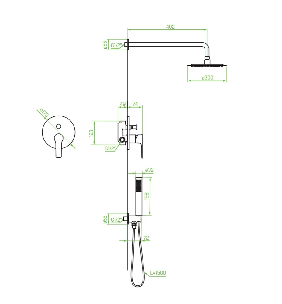 Typ produktu: komplet sprchový systém s podomietkovou batériou