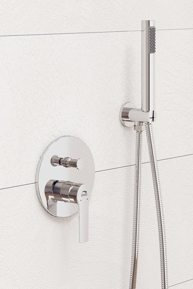 Moderný podomietkový sprchový komplet Raila v elegantnom chrómovom prevedení od značky Laveo prináša dizajn a komfort v jednom. Jednoúchytové ovládanie, keramická kartuša Ø 35 mm, horná sprcha s dosahom 413 mm, dĺžka sprchovej hadice 1 500 mm, systém proti skrúteniu ) a odnímateľné prvky so systémom proti vodnému kameňu („anti-kamień“) sú zárukou spoľahlivého používania. Zaradený do akustickej triedy I (≤ 20 dB) a prúdovej triedy A (≤ 15 l/min).