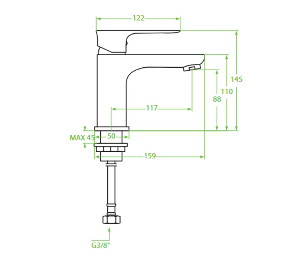 Elegantná stojaca umývadlová batéria Laveo Raila v lesklom chrómovom prevedení predstavuje ideálne spojenie dizajnu a funkčnosti pre modernú kúpeľňu. Disponuje jednoúchytovým ovládaním, keramickou kartušou Ø 35 mm, výpustom s dosahom približne 117 mm, celkovou výškou batérie 145 mm, prietokom v triede A (≤ 15 l/min) a hlučnosťou v triede I (≤ 20 dB). Automatický výpust typu “klik‑klak” uľahčuje ovládanie.